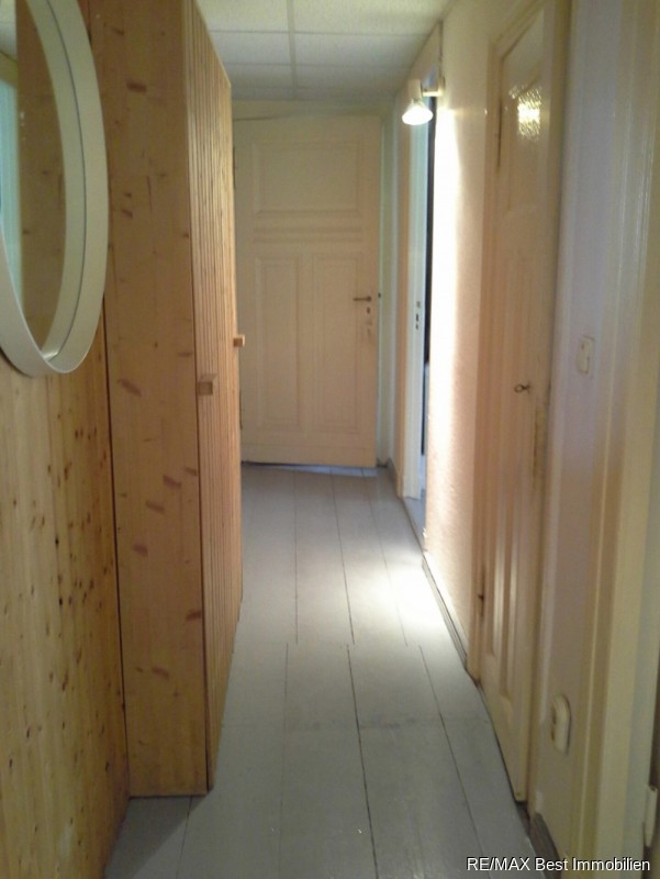 Das Bad mit Fenster ist gefliest mit Dusche, WC und Handwaschbecken . Die Küche ist mit Einbauküche und Linoleumboden ausgestattet. In den beiden Zimmern sind die vorhandenen Dielenböden grau gestrichen. Es handelt sich hier bei der Angabe der Miete um eine Bruttokaltmiete von 380,- inkl.NK, zuzüglich Heizungsvorauszahlung von zur Zeit 35,- . Die Warmwasseraufbereitung erfolgt über Durchlauferhitzer.Sonstige Angaben: