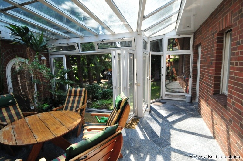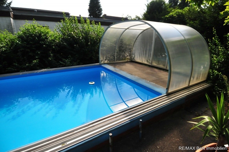 Schöner Schnitt des Wintergartens, Zentralheizung (Öl mit 15.000 l Erdtank), 1. Badezimmer (Wannenduschbad), 2. Badezimmer mit Fliesen und Amaturen von Villeroy & Boch (Duschbad), Küche, Garage (Mehrzweckraum), Außenjalousien (elektrisch), Carport, überdachter Pool mit moderner Filteranlage, Grillplatz, Westterrasse, Holzgartenhaus mit ca. 18 m² Stauraum. Der alte Baumbestand rund um das Haus sorgt für eine gemütliche Naturoase.Sonstige Angaben: