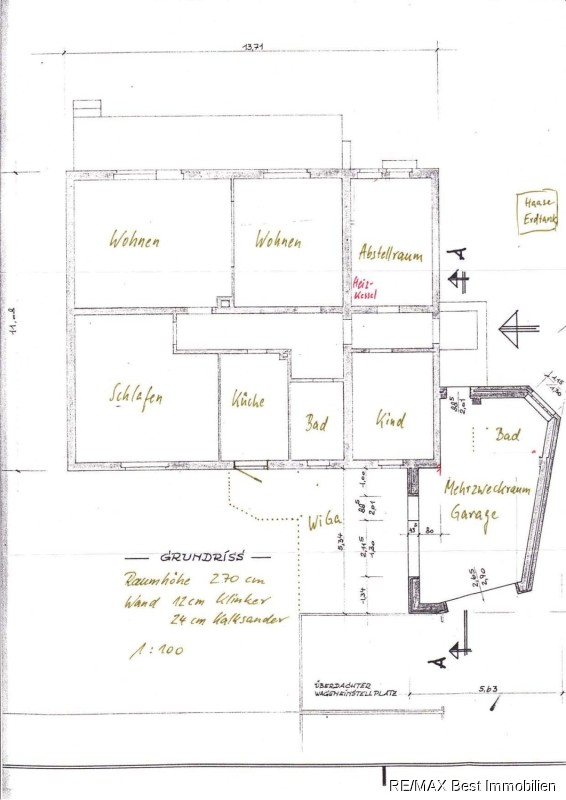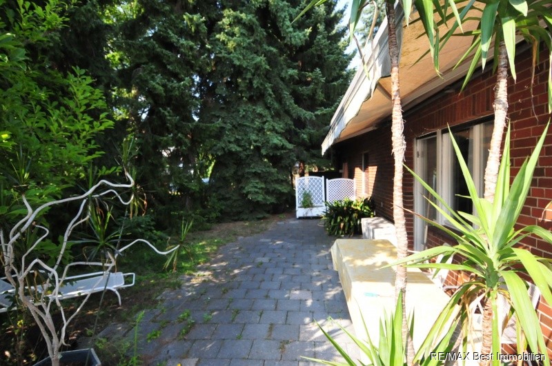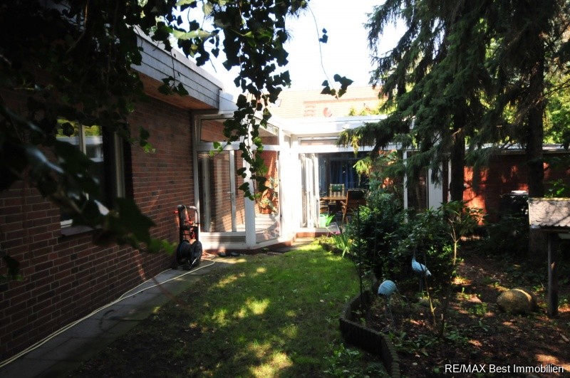 Der gepflegte Bungalow wurde 1964 in massiver Bauweise (24 cm Kalksandstein, 12 cm Klinker) mit einer großzügigen Raumaufteilung (Deckenhöhe 2,70m) errichtet. 1986 wurde das Haus mit einer große Garage (ca. 30 m²) zu dem bereits vorhandenen Carport erweitert. 1991 wurde eine neue Zentralheizung eingebaut, wobei der alte Kachelölofen erhalten blieb. (Aktivierung möglich) Zusätzlich wurde ein Wintergarten zwischen dem Haus und der Garage errichtet. 1999 wurde das komplette Flachdach saniert mit einer hochwertigen Elefantenhaut. In 2000 wurde der Pool überarbeitet und mit einer Überdachung ergänzt. In 2007 wurde der Heizbrenner ausgetauscht. 2014 wurde eine neue Frischwasserleitung in das Haus verlegt. Das Haus befindet sich dem Alter entsprechend in einem renovierungswürdigen Zustand und kann somit den Bedürfnissen der Erwerber angepasst werden.Lagebeschreibung: