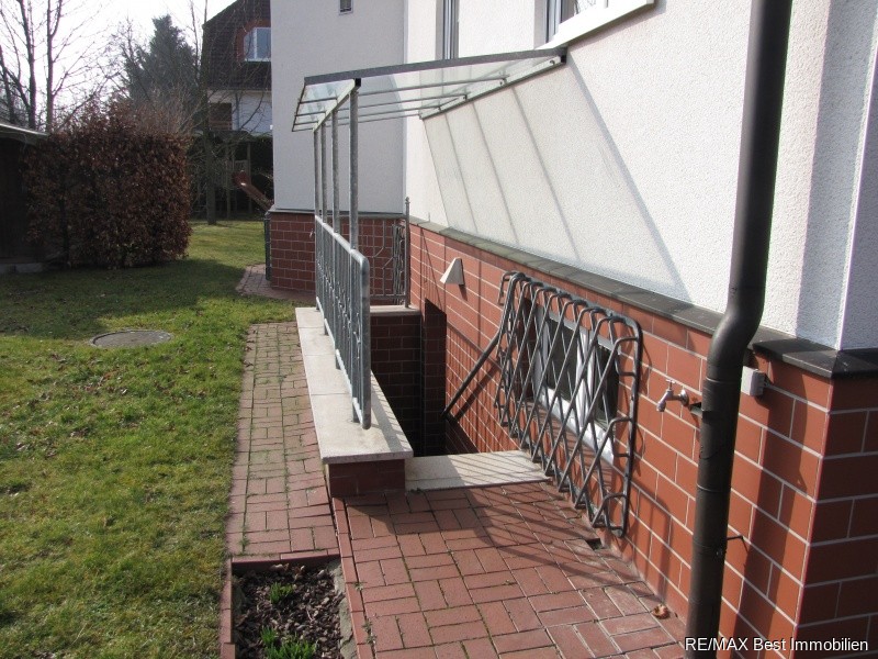 - überdachter Außenkellerzugang mit Pumpensumpf
