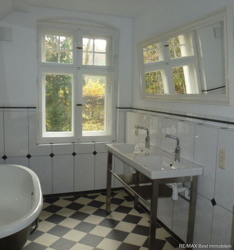Die Villa ist ausgestattet mit einem großzügigen Treppenhaus, einem Gäste-WC, einer großen Küche, 4 große Wohnräume im EG sowie einem WC/Extradusche im Zwischengeschoss. Im OG befindet sich ein großzügiges Bad mit Gusswanne, ein Doppelwaschtisch und ein WC sowie 3 helle Schlaf/Aufenthaltsräume. Im EG und OG befindet sich zusätzlich eine großzügige Glasveranda in Südlage, als Sonnenfang und Schallschutz. Die Räume sind mit hochwertigen Fliesen und/oder geschliffenen, eingelassenen Kieferdielen ausgelegt. Die Gas-, Wasser und Elektroinstallation ist modern.Sonstige Angaben: