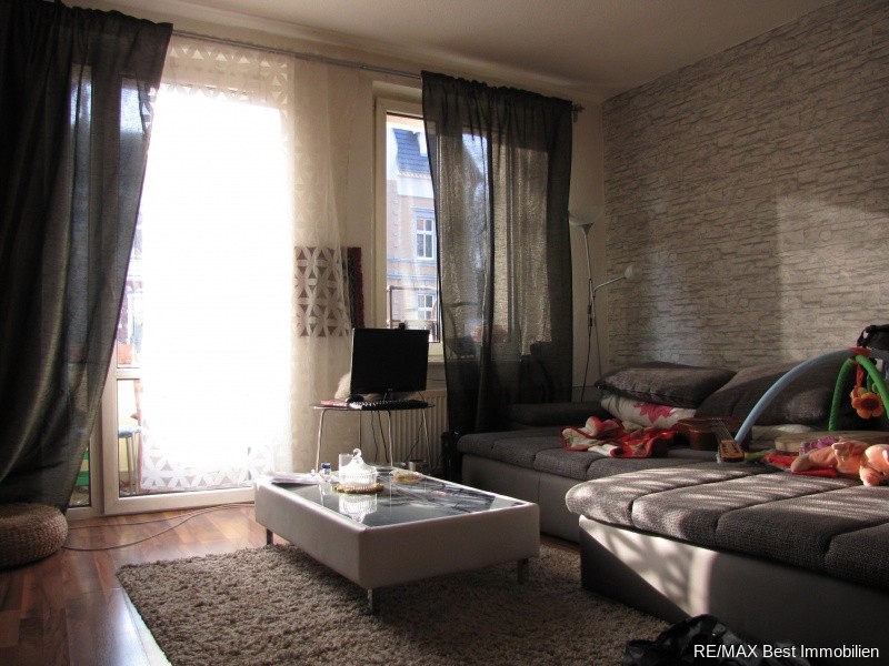 Die hier zum Verkauf stehende Eigentumswohnung befindet sich im Hochparterre eines ca. 1957 errichteten Mehrfamilienhauses. In dem Zeitraum von 1998 bis 1999 wurde diese Immobilie saniert. Das große Zimmer ca. 20m² besitzt einen Zugang zum Südwest-Balkon. Das Bad mit Fenster ist wandhoch hell gefliest und mit einer Dusche, einem Waschbecken und einem WC ausgestattet. Die Küche ist mit Gasherd und einer Einbauküche (Eigentum der Mieter) ausgestattet und besitzt im Fußbodenbereich Fliesen. Der Flur, die Küche sowie die 3 Zimmer sind mit PVC-Fußböden versehen. Nach Aussage der jetzigen Mieter ist dieser bereit gegen Erstattung der Kosten auszuziehen.Lagebeschreibung: