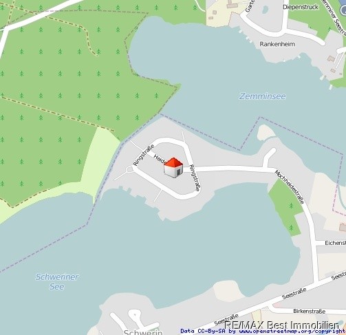 Das ca. 555 m² große Grundstück befindet sich in einer besonders schönen, ruhigen und bevorzugten Wohnlage, eingebettet zwischen dem Zemminsee und dem Schweriner See, in der Gemeinde Schwerin. Die Umgebungsbebauung besteht aus neuen Wohnhäusern mit bis zu 1,5 Geschossen sowie Bungalowbebauung. Das Grundstück ist derzeit mit einem Bungalow sowie einer Garage bebaut. In unmittelbarer Nähe befindet sich ein öffentlicher Zugang zum Wasser.Lagebeschreibung: