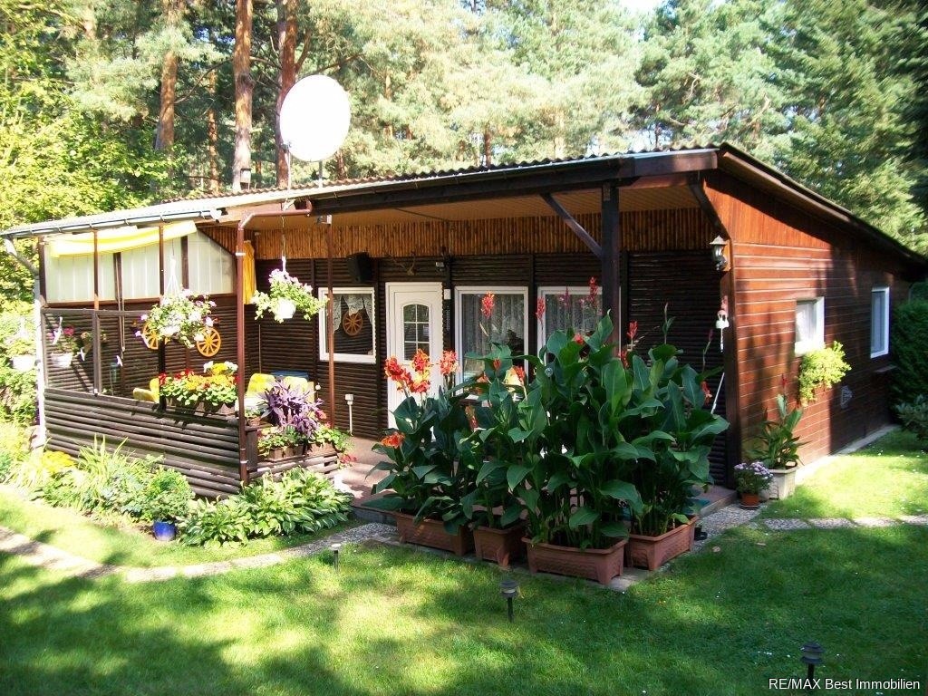 Bei dem hier angebotenen Objekt handelt es sich um einen kleinen, aber gemütlichen Bungalow mit einer Wohnfläche von ca. 34m² mit anliegendem Abstellraum+Gartenhaus mit ca. 14 m². Das Grundstück befindet sich in der Mitte von 3 Parzellen und hat eine Größe von ca. 575 m². Hier ist alles vorhanden, was man für einen erholsamen Nachmittag nach der Arbeit oder aber auch am Wochenende benötigt. Von der großen und überdachten Terrasse aus, haben Sie einen herrlichen Blick in den Garten und in den Wald. Mehr Natur geht nicht!Lagebeschreibung: