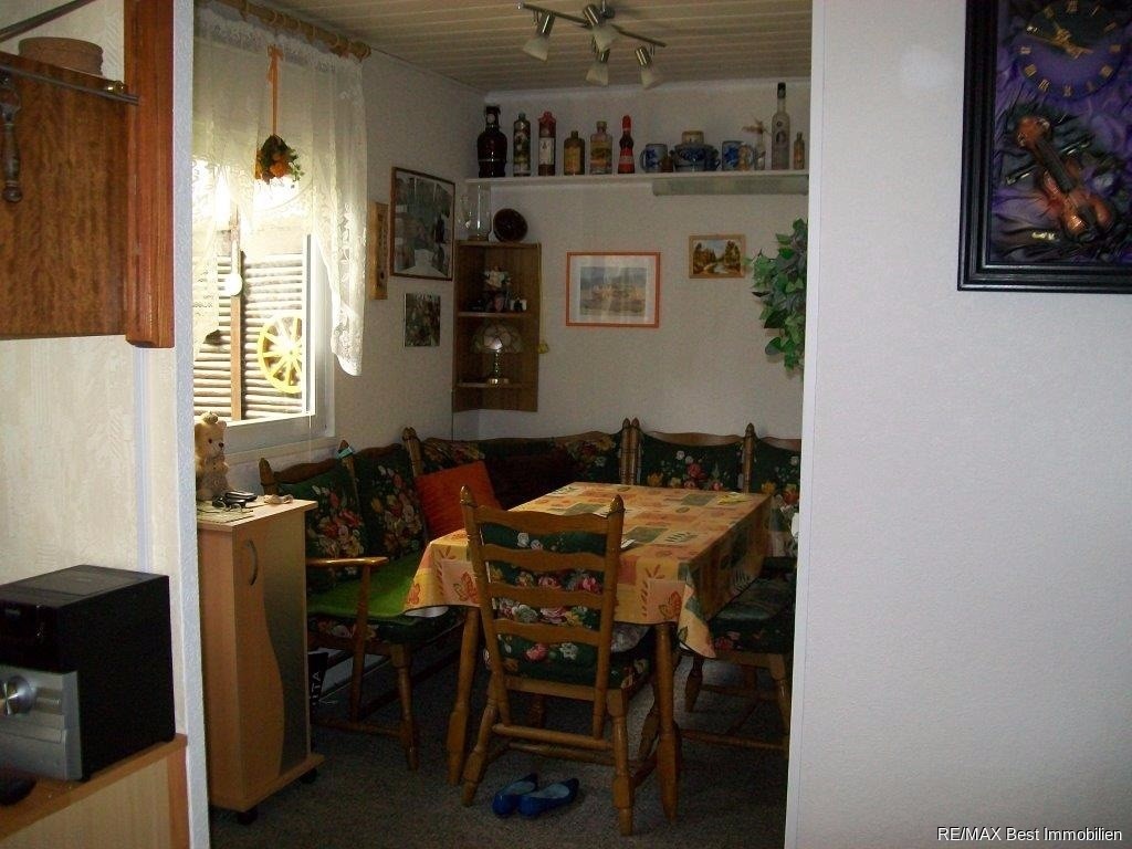 Die 2 Zimmer werden optimal ausgenutzt. Im Küchenbereich befindet sich eine kleine Einbauküche mit Gasherd, Spüle, Kühlschrank und Essecke. Der Wohn- und Schlafbereich ist vollständig und gemütlich eingerichtet. Das Badezimmer ist vollständig gefliest und zweckmäßig mit Dusche, Waschbecken, WC und einem Fenster ausgestattet. Alle Fenster sind Kipp-, Drehflügel-, ISO-Fenster. Die Eingangstür ist isoliert und einbruchshemmend. Die Decken der Zimmer sind mit Holzpanelen versehen. Im Fußbodenbereich befindet sich überwiegend Teppich. Am Bungalow ist ein zusätzlicher Werkstattraum in dem die Elektro,- und Gasanlage installiert ist. Ihre Gartengeräte finden ihren Platz im anliegendem Nebenhaus mit einer Größe von ca. 8 m². Hier erreichen Sie über einen separaten Eingang einen kleinen Toilettenraum mit Waschbecken und WC. Entsorgung über Grube, Wasserversorgung über Brunnen mit Trinkwasserqualität.Sonstige Angaben:
