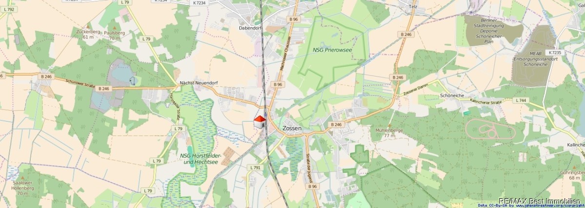 Das Zentrum der Stadt Zossen liegt etwa 20 km südlich der Berliner Stadtgrenze an der B 96 und ist eine amtsfreie Stadt im Landkreis Teltow-Fläming (Brandenburg). Die Kleinstadt Zossen ist von Wäldern und Seen umgeben. Gute Verkehrsanbindung, der Berliner Ring (Abfahrt Rangsdorf) bzw. die A 13 nach Dresden (Abfahrt Mittenwalde) sind über 2 Bundesstraßen schnell erreichbar. Nach Berlin gelangen Sie mit der Bahn in ca. 45 min. Der neue Flughafen BER ist mit Bahn oder Auto in gut 25 min. erreichbar. Im Ortsteil Dabendorf bietet die Stadt Zossen einen hervorragenden Schulstandort an. Ein klassisches Gymnasium ist in Rangsdorf. Viele Einkaufsmöglichkeiten finden Sie direkt in Zossen oder im nahegelegenen Südringcenter in Rangsdorf.Ausstattung: