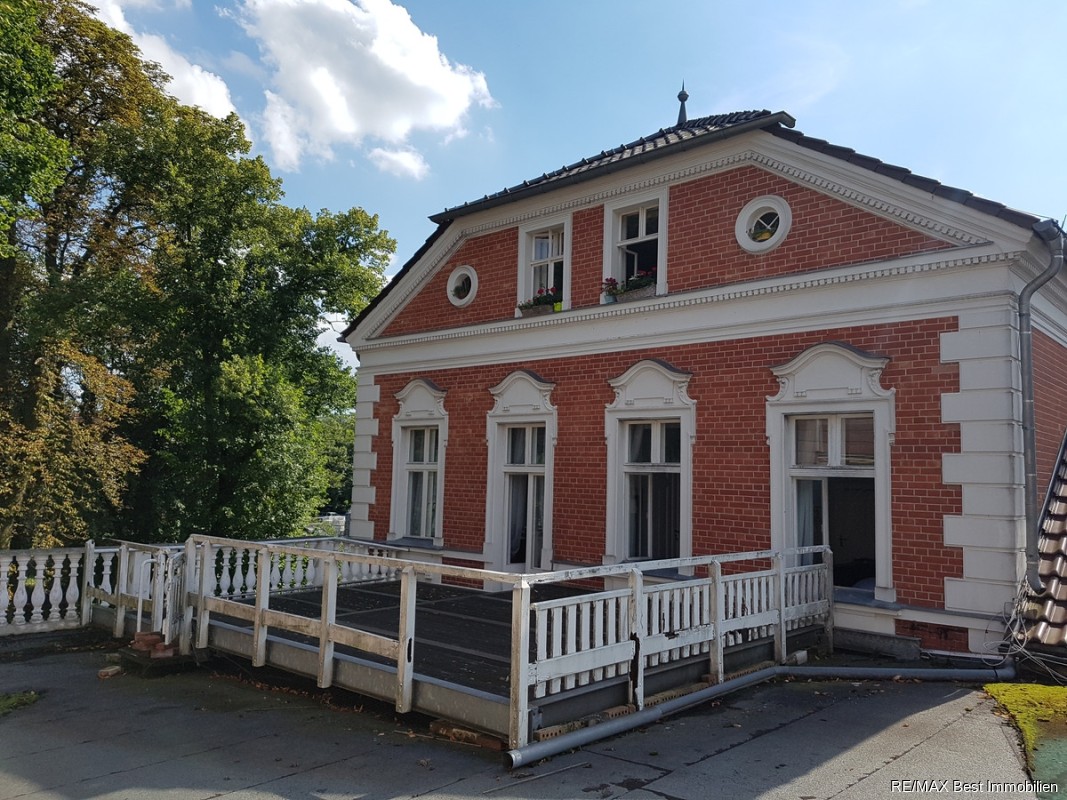 Bei diesem außergewöhnlichen Objekt mit seiner schönen Fassade handelt es sich um ein teilunterkellertes 1- bis 2-geschossiges Gaststätten- und Wohngebäude mit Saalanbauten (aus dem Jahre 1986) sowie einem Lagertrakt und einer Werkstatt. Das Objekt wurde im Wesentlichen im Jahr 1897 errichtet. Laut unseren Informationen liegt kein Denkmalschutz vor.