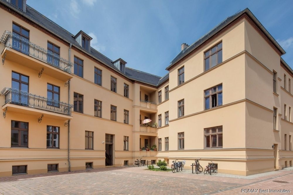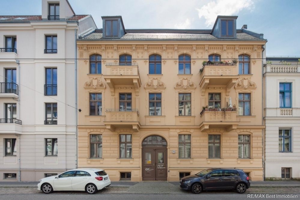 Die Geschwister-Scholl-Straße 75 ist eines der schönsten Mehrfamilienhäuser der gesamten Straße. Das denkmalgeschützte Gebäude befindet sich in einem exzellenten Gesamtzustand und setzt sich aus Vorderhaus, Seitenflügel, Gartenhaus sowie anschließender Remise zusammen. Jeder Hausabschnitt besitzt seinen eigenen Hauseingang, innenliegende Briefkästen sowie Treppenhäuser mit aufwendigen historischen Decken- und Wandmalereien. Im Jahr 2004 wurde das Haus durch den Voreigentümer komplett modernisiert und verfügt seitdem u. a. über neue Elektroleitungen, eine zentrale Heizungs- und Warmwasserversorgung, Fenster mit neuer Isolierverglasung bzw. aufgearbeitete Doppelkastenfenster, eine komplett instandgesetzte Fassade, neue Wärmedämmung an den Giebelseiten des Seitenflügels sowie Entwässerungsrohre und einen sanierten Kellerbereich. Im denkmalgeschützten Gründerzeitgebäude warten 28 gut geschnittene Wohnungen auf Selbstnutzer und Kapitalanleger. Mit Gesamtwohnflächen von ca. 53 bis ca. 114 m² und einer Zimmeranzahl von 2 bis 5 überzeugen die familienfreundlichen Wohneinheiten mit vorteilhaft geschnittenen Grundrissen, die ein großzügiges Wohnen ermöglichen. Sämtliche Räume sind lichtdurchflutet und in einem bezugsfertigen Zustand. Die typischen Altbauklassiker begeistern mit über drei Metern Raumhöhe, überwiegend originalen Dielenböden, Stuckelementen und bauzeitlichen Kastenfenstern, historischen Doppel-Flügeltüren, geschmackvollen Badezimmern mit Badewanne, meist einem Balkon oder einer Loggia, einer Gegensprechanlage und einem dazugehörigen geräumigen Keller.Lagebeschreibung: