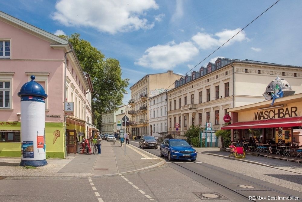 Das Wohnviertel Brandenburger Vorstadt liegt zwischen dem Fließgewässer Havel und dem prestigeträchtigen Park Sanssouci mit seinen imposanten Schlössern und Baudenkmälern, die zum UNESCO-Welterbe gehören. Die Gegend rund um das Wohnobjekt bietet ein ansehnliches Altbauensemble, das mit sanierten und großzügigen Wohnungen lockt. Zentral gelegen erfreut sich das Wohnviertel einer exzellenten Verkehrsanbindung zum städtischen sowie zum Regional- und Fernverkehr. Dank der gut funktionierenden Infrastruktur finden Sie hier alles, was Sie zum Leben brauchen. Die Geschwister-Scholl-Straße liegt mitten in der Brandenburger Vorstadt, eines der imposantesten Wohnviertel Potsdams. Der Park Sanssouci ist mit nur fünf Gehminuten in naher Laufweite zum Wohnobjekt, das Fließgewässer Havel erreichen Sie in zehn Gehminuten. Die Straße bietet eine ansehnliche Architektur, deren einzelne Häuser ebenso individuell sind wie die kleinen Shops, die sich im Umkreis befinden. Hier finden Sie unter Anderem Supermärkte, Bäcker, ein Ärztehaus, Kitas sowie Bars und Cafés, die eine familiäre Infrastruktur gewährleistet. Die Bus- und Tramhaltestelle „Schloss Charlottenhof“ liegt genauso wie der Regional- und Fernverkehrsbahnnof „Charlottenhof“ in nur vier Gehminuten Entfernung. Das Wohnobjekt befindet sich in zentraler Lage mit schneller Anbindung in alle Himmelsrichtungen, sodass Sie die Metropole Berlin innerhalb von ca. 30 Minuten erreichen.Ausstattung: