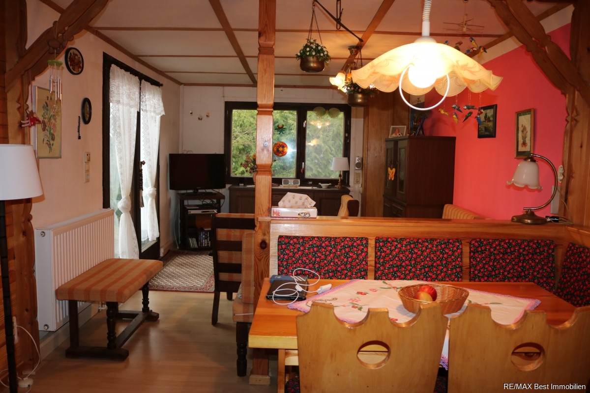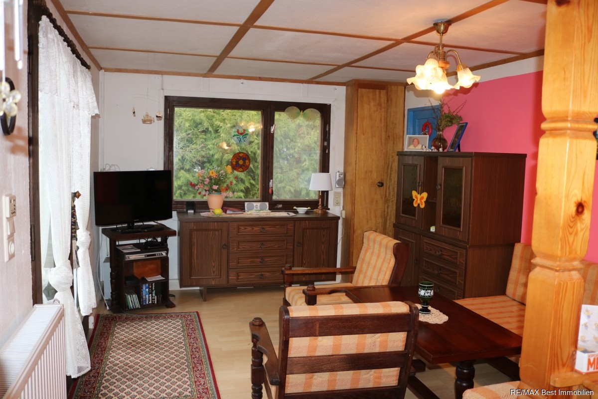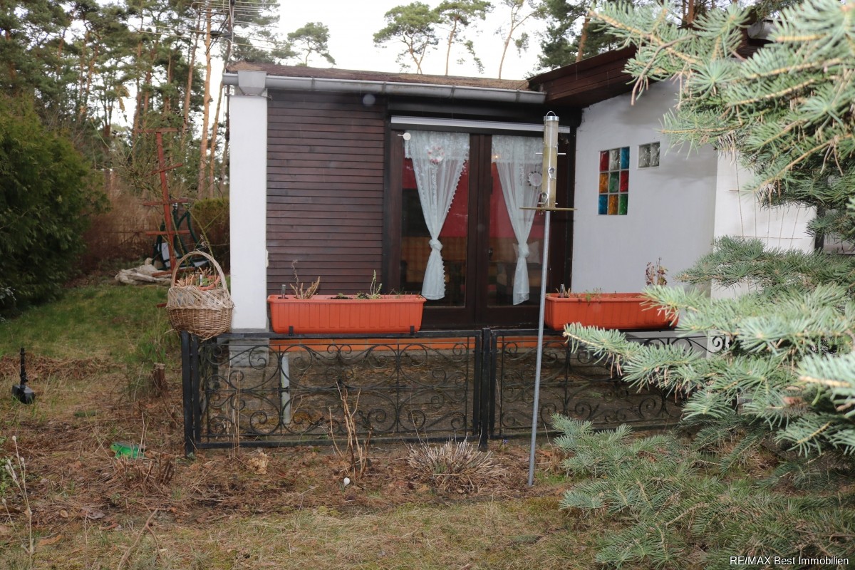 Der kleine, gemütliche, mit viel Holz ausgestattete Bungalow besitzt 3 Zimmer. Der Wohn/Essbereich bietet genügend Platz, hier finden Sie auch die zweckmäßig eingerichtete Küche. Das geflieste Bad mit Dusche und das separate WC sind mit Fenstern ausgestattet. Der Keller, in dem sich der Gasanschluss und das Hauswasserwerk befinden, liegt unter dem Flurbereich. Der Bungalow wird mit einer Brennwerttherme beheizt, die sich in der angrenzenden Garage befindet. Ein Holzschuppen und eine kleine Terrasse runden das Freizeitvergnügen ab. Das Grundstück ist voll erschlossen, mit Wasser/Abwasser, Strom und Gas. Zusätzlich gibt es eine Grube an die das Abwasser und einen Brunnen an den das Trinkwasser der Zeit angeschlossen sind.Genießen Sie Ihre Freizeit inmitten des alten Baumbestandes und mit der Nähe zum Mellensee! Natur pur! Mehr geht nicht!