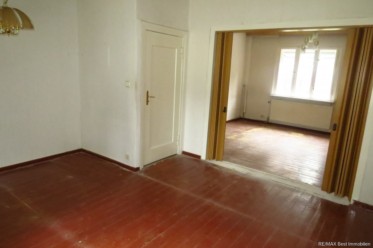 Auf diesem herrlichen 1.367 m² großen, parkähnlich angelegtem Grundstück mit altem Baumbestand (u.a. Mammutbaum, Magnolie) befindet sich ein 1933 erbautes 1,5 geschossiges, voll unterkellertes Einfamilienhaus mit ca. 89 m² Wohnfläche und ca. 50 m² Keller und ein etwa 1967 errichtetes bewohnbares Gartenhaus mit ca. 32 m² Wohnfläche. Beide Häuser sind renovierungsbedürftig.Das Erdgeschoss des Haupthauses liegt erhöht. Dadurch befindet sich der trockene Keller über dem Bodenniveau und ist somit ohne größeren Aufwand zu Wohnraum umbaubar.