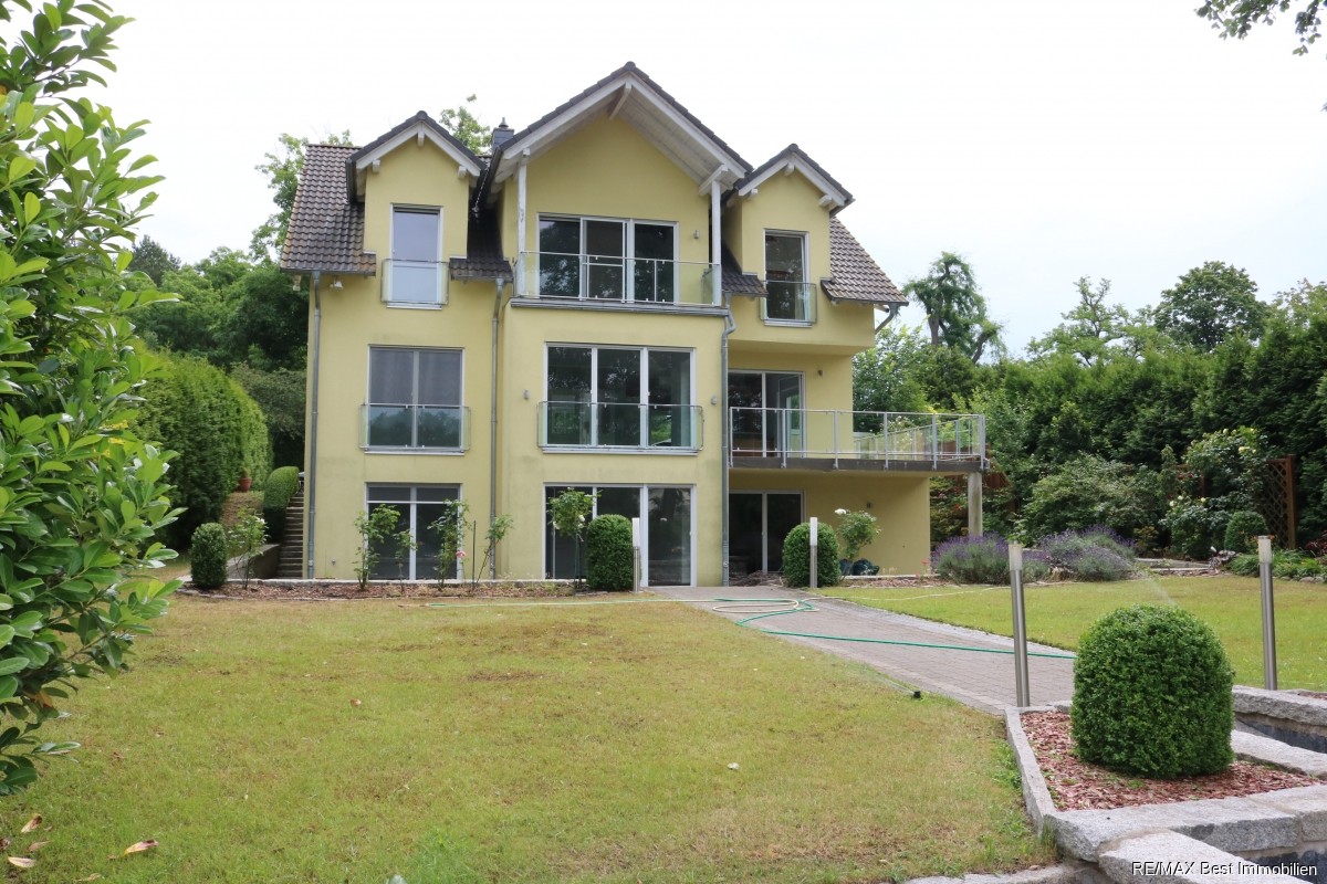 Wohnen Sie zwischen Wasser, Villen und Wald mit herrlichem Blick auf den Motzener See und einem eigenen, schwimmenden Ponton (mit E-Motor) als Bootsanleger! Mehr geht nicht! Nutzen Sie diese einzigartige Gelegenheit!Die exklusive Architektenvilla aus dem Jahr 2003 bietet Ihnen eine außergewöhnliche Wohnqualität. Mit ca. 357 m² Wohn-/Nutzfläche aufgeteilt mit einem Staffelgeschoss auf drei lichtdurchflutete Ebenen mit 8 Zimmern, eignet sich diese Immobilie für mehrere Nutzungsmöglichkeiten. Entweder als Mehrgenerationenhaus, als Haus mit Einliegerwohnung oder als Wohnen plus gewerblicher Nutzung. Finden Sie Erholung pur auf einem ca. 1.150 m² großen Wassergrundstück. Auch der Golfclub Motzen, gleich um die Ecke, bietet Ihnen die entsprechende Entspannung!