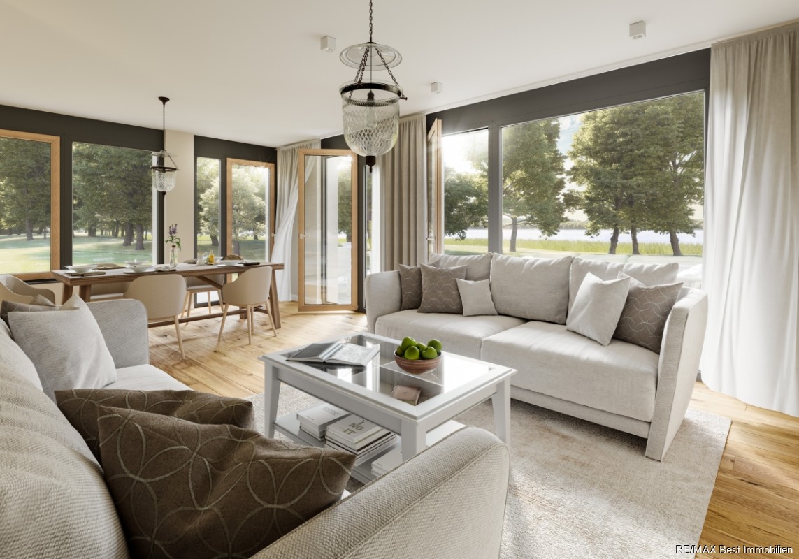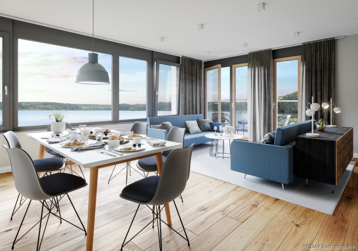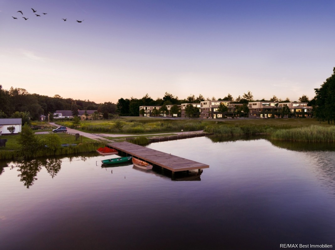 163 modern geschnittene 2-5-Zimmer-Wohnungen mit hochwertiger Ausstattung und anspruchsvoller Architektur auf einem Areal mit viel Grün und direktem Seezugang.