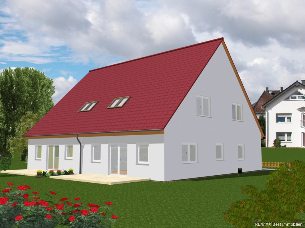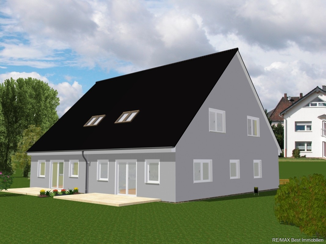 Hierbei handelt es sich um ein geplantes Bauvorhaben eines Doppelhauses mit Realteilung.Die Abbildung ist ein Projekt mit Planung eines Haustyps auf einem festen Baufeld, daher sind nur im Innenbereich leichte Planungsänderungen möglich. Hier angeboten wir das GS Nr. 1 mit einer Doppelhaushälfte gebaut in Massivbauweise. Die Grundrisse und die Flächenangaben beziehen sich auf die Wohn/Nutzfläche.