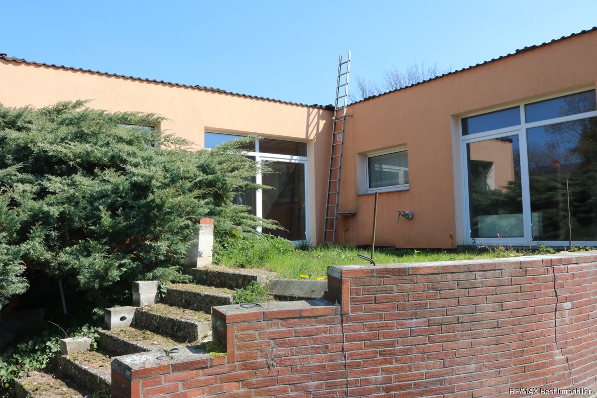 - Bungalow eingeschossig, ideal zum Aufstocken und somit auch als Zwei/Mehrfamilienhaus denkbar und zusätzlich, aufgrund des Kellers mit separatem Zugang auch für Wohnen/Gewerbe nutzbar.