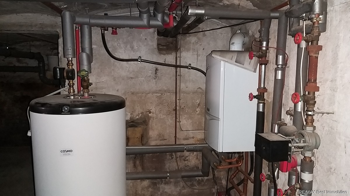 Das Gebäude ist teilweise unterkellert. Im Keller befinden sich die Hausanschlüsse und die relativ neue Gas-Brennwerttherme als zentrale Heizungsanlage mit Warm-Wassererzeugung.