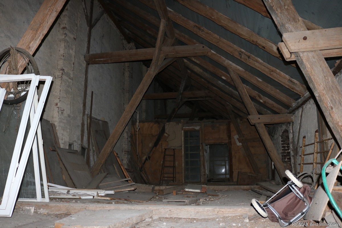 Das Erdgeschoss verfügt über eine Wohn/Nutzfläche von ca.120m², darin enthalten ist eine Ladenfläche von ca.50m². Hier können Sie Wohnen und Arbeiten angenehm kombinieren. Die kleine 2 Zimmerwohnung ist über den Hofeingang zu erreichen. In das Obergeschoss kommen Sie über das zentrale Treppenhaus. Hier befindet sich eine große 3-4 Zimmerwohnung. Mit geringem Aufwand können Sie aus der Ausbaureserve eine weitere 2-3 Zimmerwohnung schaffen. Viele Vorarbeiten wurden bereits erledigt. Insgesamt kommen Sie im Dachgeschoss dann auf ca. 60-70m² Wohn/ bzw. Nutzfläche.