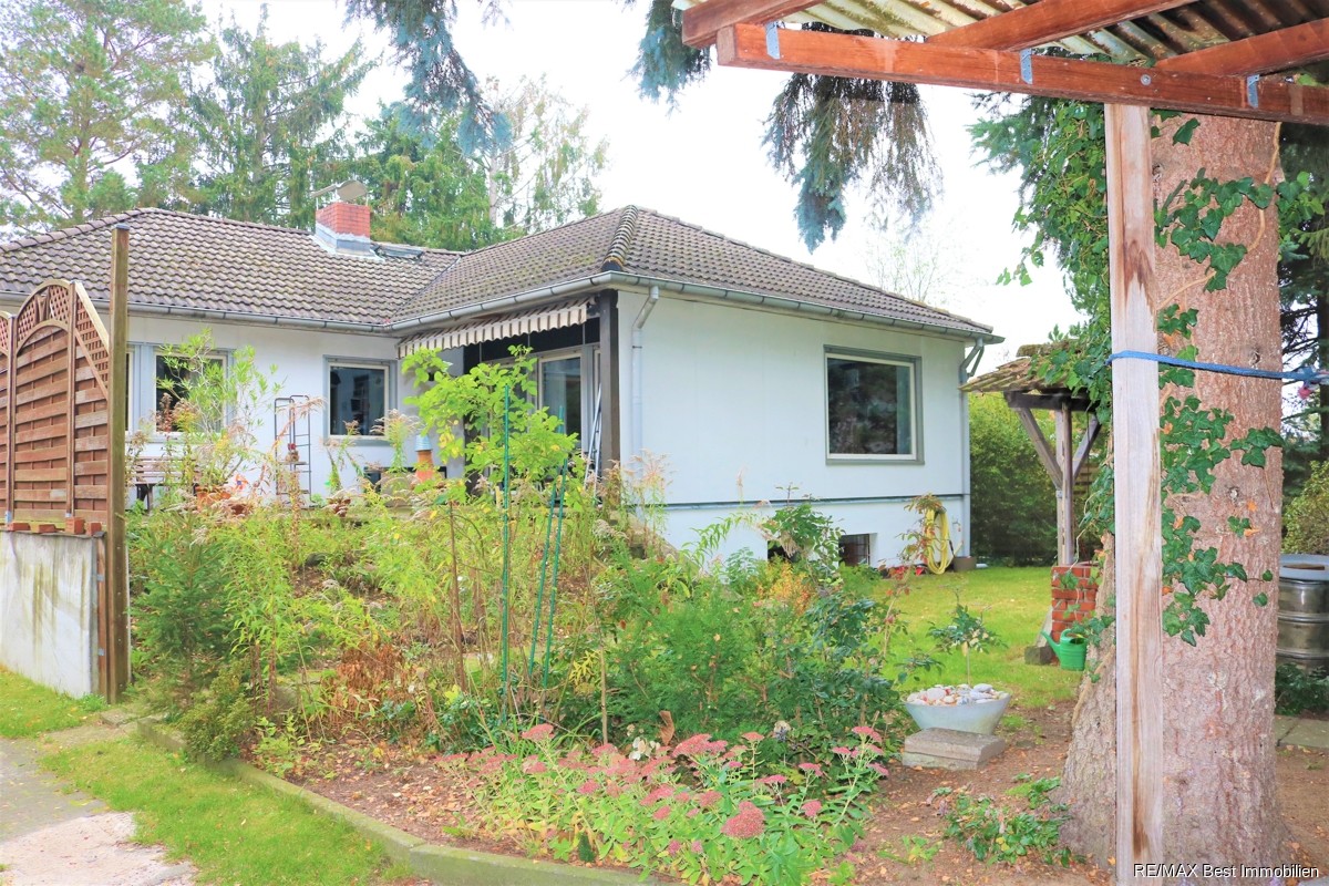 Das hier angebotene Grundstück ist mit einem Winkelbungalow (Okal-Fertigteilhaus) aus dem Jahr 1974 bebaut und allein durch die Lage und die Größe des Grundstücks für eine größere oder mehrere Familien wunderbar geeignet.Das Haus kann modernisiert/saniert, aufgestockt oder abgerissen werden. Im Zuge der Sanierung ist eine Aufstockung mit einem ausgebauten Dachgeschoss möglich. Pläne der Firma Okal liegen uns vor. Diese müssten noch mit der örtlichen Baubehörde abgestimmt werden! Somit könnten Sie z.B. Platz für eine Einliegerwohnung schaffen.