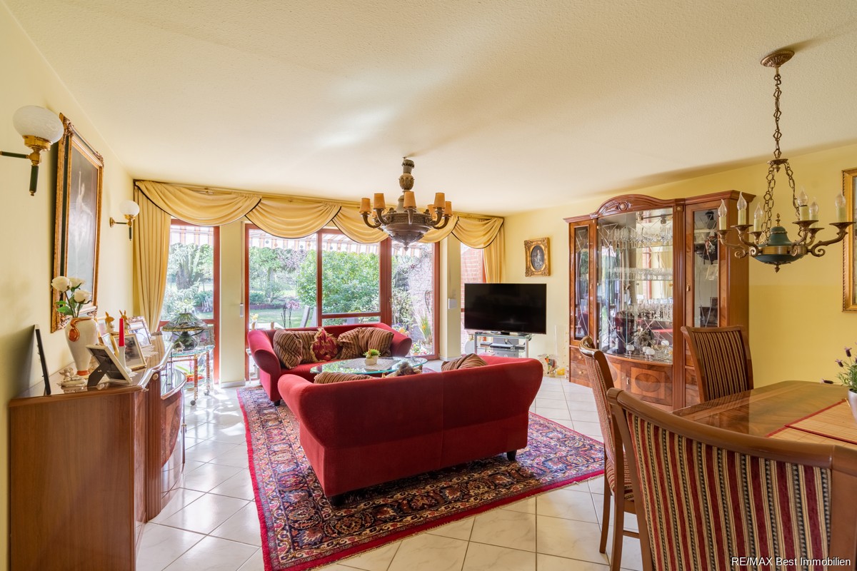 Das Erdgeschoss bietet ein helles Wohnzimmer zzgl. Küche mit einem kleinen Essbereich und ein Gäste-WC auf einer Wohnfläche von ca. 50 m² zzgl. einer Terrasse von ca. 20 m² mit Südausrichtung und schön angelegtem Garten.