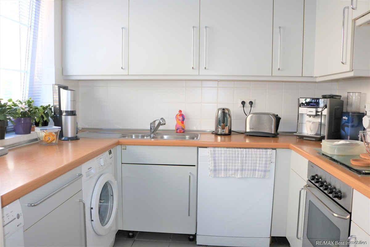 Die Wohneinheit verfügt über eine helle, freundliche Einbauküche inkl. Gasherd und Spüle. Kühlschrank und Geschirrspülmaschine befinden sich im Eigentum des Mieters.