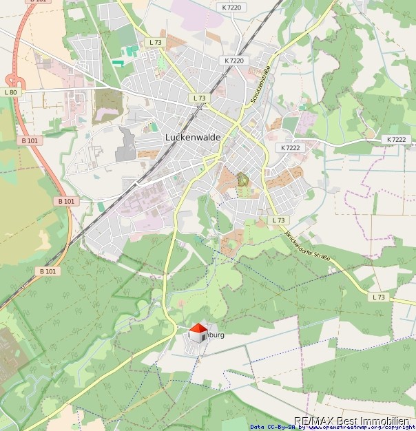 Die Immobilie befindet sich in ruhiger Lage im Ortsteil Kolzenburg von Luckenwalde in Brandenburg, einer aufstrebenden Kreisstadt im Landkreis Teltow-Fläming mit etwa 21.000 Einwohnern.Luckenwalde liegt etwa 50 Kilometer südlich von Berlin. Nördlich von Luckenwalde liegt Trebbin, südlich Jüterbog, östlich Baruth/Mark und westlich Treuenbrietzen. Die Stadt besaß große Bedeutung als Industriestadt, seit der Deutschen Wiedervereinigung entwickelt sich der Tourismus zum wirtschaftlichen Schwerpunkt der Stadt und ihrer Umgebung.
