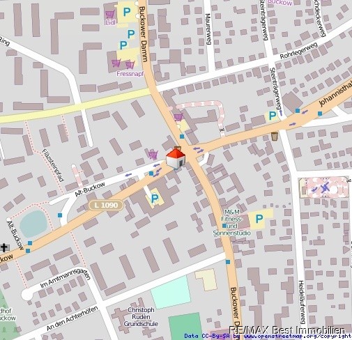 Im Bezirk Neukölln/ Buckow direkt im Dorfkern gelegen und somit sehr zentral. Die Buslinien X11 und M11 halten direkt vor der Tür. In 5 min. ist man in den Gropius-Passagen und an der U-Bahnlinie 7.Die Kreuzung Johannisthaler Chausse/Buckower Damm ist eine stark befahrene Ost/ West Achse mit Ausfallstraße nach Brandenburg (Großziethen).