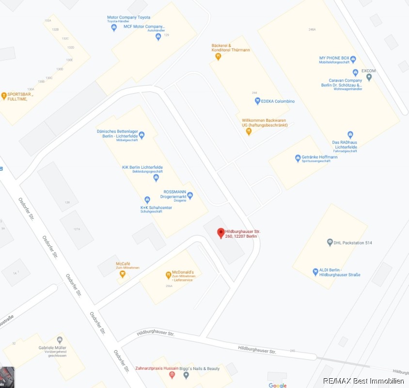 Top Standort! Das Grundstück mit Halle zwischen McDonalds, Aldi, Toyata, Rossmann, KiK, Edeka, Getränke Hoffmann, Das RADhaus und anderen gelegen, inmitten des attraktiven Gewerbegebiets Hildburghauser Str., sucht einen neuen Nutzer.Über die Osdorfer und Hildburghauser Str. erreichen Sie das ca. 781 m² große Gewerbegrundstück. Das Gewerbezentrum befindet sich direkt am S-Bahnhof Osdorfer Str. und ist somit für ein großes Kundenklientel perfekt zu erreichen.