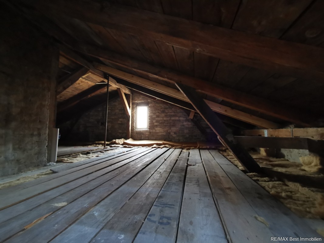 Reicht der vorhandene Platz mit ca. 90 m² je Ebene nicht aus, könnte der Dachboden (Kaltdach) ausgebaut werden.