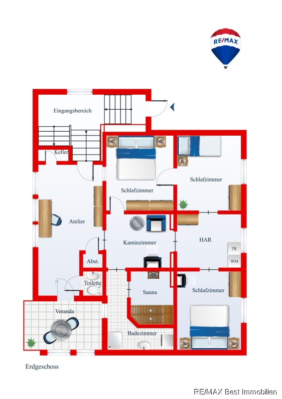 - EG: Sauna und Bad gefliest, Rest PVC-Boden