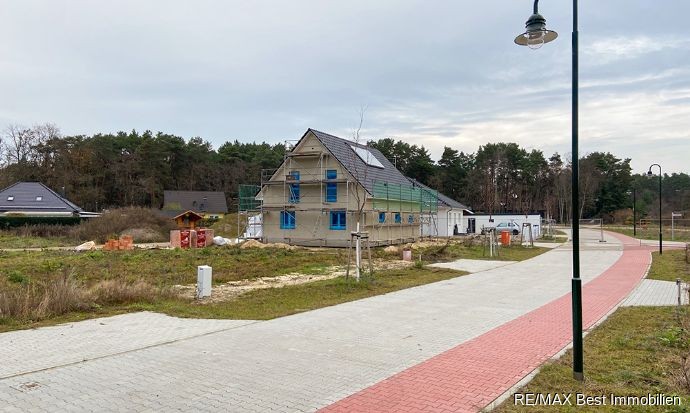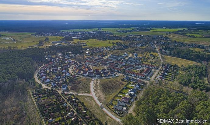 Friedersdorf, heute Teil der Gemeinde Heidesee, liegt etwa 25 Kilometer südöstlich der Berliner Stadtgrenze im Landkreis Dahme-Spreewald. Hier befindet sich das über 300 Hektar große Naturschutzgebiet „Skabyer Torfgraben“. Das namensgebende Gewässer erinnert an den früheren Abbau des begehrten Rohstoffs Torf und ist eingebettet in die ostbrandenburgische Heide mit vielen attraktiven Seen. Fischotter, Eisvogel, Kranich oder Zauneidechse sind hier ebenso zuhause, wie Sonnentau oder der seltene Schlammpeitzger. Und vielleicht auch bald Sie!Die Gemeinde Heidesee bietet mit all ihren Ortsteilen eine komplette Infrastruktur mit Kitas, Schulen, ärztlicher Versorgung, Kultur- und Sportmöglichkeiten, aber auch Einkaufsmöglichkeiten für den täglichen Bedarf. Ein besonderer Vorzug von Friedersdorf ist die eigene Autobahnauffahrt an der A 12. In wenigen Minuten ist das Schönfelder Kreuz mit der Berliner Stadtautobahn A 113 oder der A 13 Richtung Dresden erreicht. Der kurze Weg zum Flughafen Schönefeld und zum späteren BER punktet ebenfalls an diesem gut angeschlossenem Wohnort. Bequem ist man zudem mit der Regionalbahn in nur einer Stunde am Bahnhof Alexanderplatz. Das Neubau-Projekt steht für naturnahen Ausgleich zur Arbeit in der Stadt Berlin. Junge Familien werden sich hier wohlfühlen, denn die grüne Umgebung ist die beste und sicherste Spielstraße für den Nachwuchs. Freunde des ruhigen Wohnens, Naturliebhaber, Angler, Wassersportler und Radfahrer kommen ebenso auf ihre Kosten, wie Fans des leisen Fliegens mit dem Flugplatz für Segelflieger in Friedersdorf. Friedersdorf heißt Sie herzlich willkommen!Ausstattung: