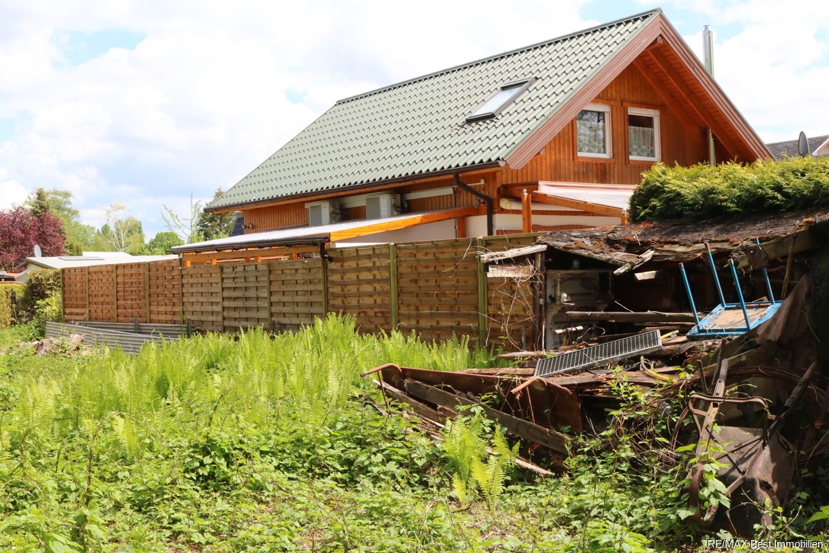 Auf dem Grundstück befindet sich derzeit ein alter Holzbungalow, welcher jedoch abgerissen werden muss.
