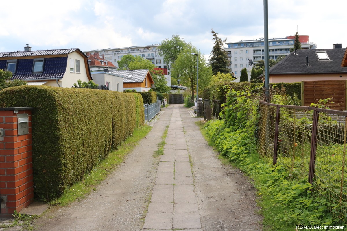 Das Grundstück ist teilerschlossen, lediglich ein Brunnen für Gartenwasser befindet sich auf dem Grundstück. Die Erschließung ist über eine Privatstraße per Baulast gesichert und damit möglich.Der restliche Baubestand muss abgerissen werden (Holzlaube). Die Kosten für Abriss und Erschließung hat der Erwerber zu tragen. Angaben zu der möglichen Bebauung entnehmen Sie bitte den Anlagen des Expose´s nach Anfrage.