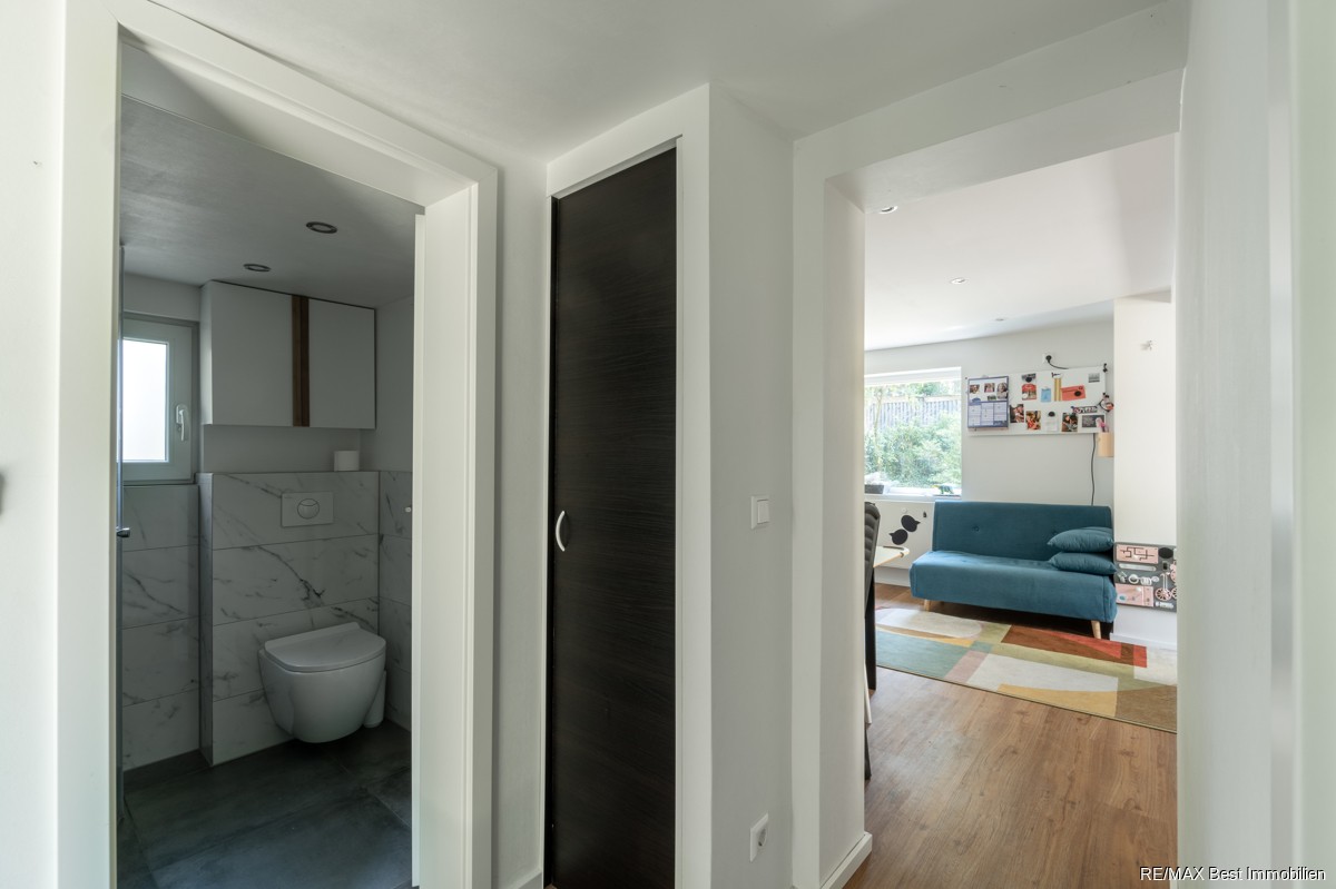 Es bietet sich perfekt für Mehrgenerationenwohnen (Eltern, erwachsenes Kind), Unterbringung einer Pflegeperson oder Pflegepersonal oder auch zur Ferienvermietung an.