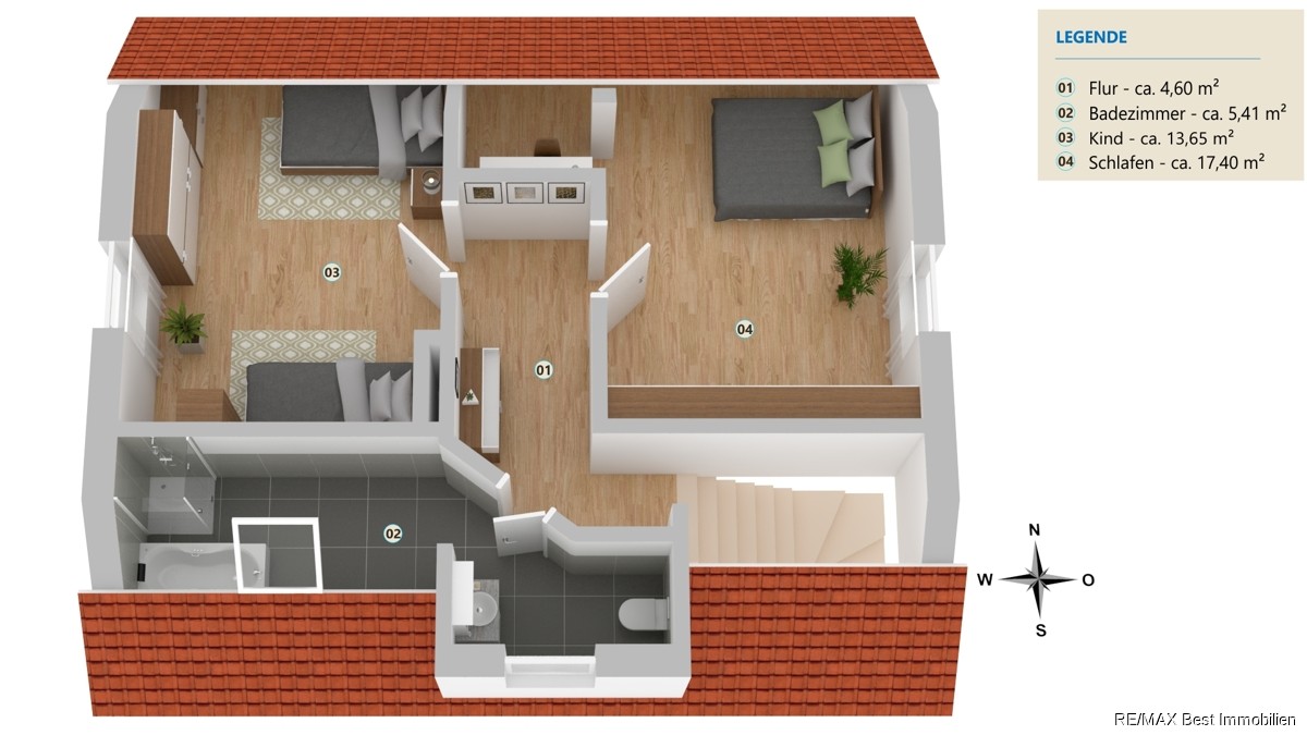 Die in diesem Exposé gemachten Aussagen beruhen auf Auskünften Dritter. Die Grundrisse und die Flächenangaben des Auftraggebers zur Wohn- bzw. Nutzfläche sind unverbindlich. Wir übernehmen daher keine Haftung für die hier gemachten Angaben, insbesondere für Preise, Flächenangaben, Grundrisse oder Lageskizzen. Dieses Angebot ist freibleibend, ein Zwischenkauf bleibt vorbehalten. Wir sind auch für den Eigentümer provisionspflichtig tätig.Weitere Angebote finden Sie unter www.remax-tb.de