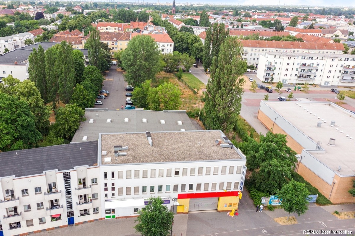 Das Grundstück verfügt über eine Gesamtgröße von ca. 4.156 m², darin enthalten ist der Bestand, die Parkplatzfläche mit ca. 35 Stellplätzen und die ca. 1.500 m² große für das Neubauprojekt vorgesehene Fläche. Das Grundstück ist laut BORIS als Baugrundstück für Wohnbebauung mit einer GFZ von 0,8 ausgewiesen. Es liegt derzeit kein Bebauungsplan vor. Somit liegt das Grundstück im Geltungsbereich des §34c BauGB. Anhand der umliegenden Nachbarschaftsbebauung ist eine Neubauplanung mit 3 Vollgeschossen zzgl. Staffelgeschoss laut mündlicher Auskunft des Bauamtes realisierbar.