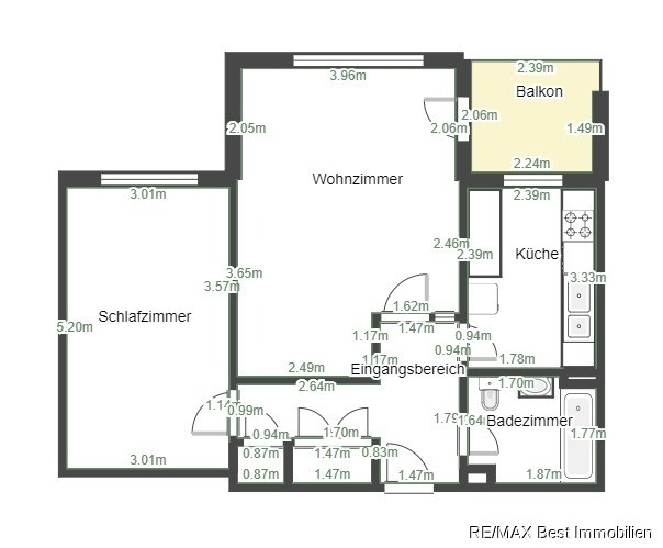 - innenliegendes Bad o. Fenster, gefliest - Balkon gefliest