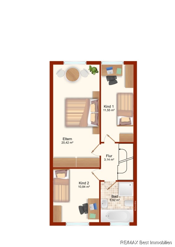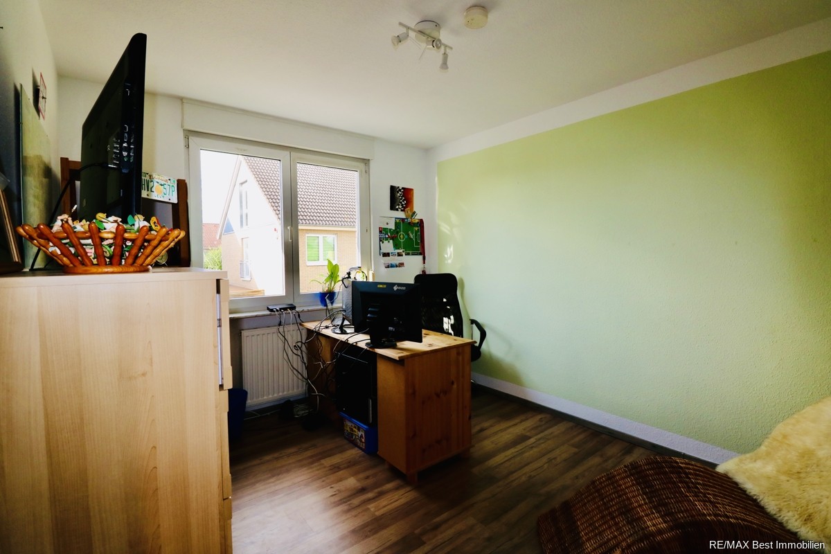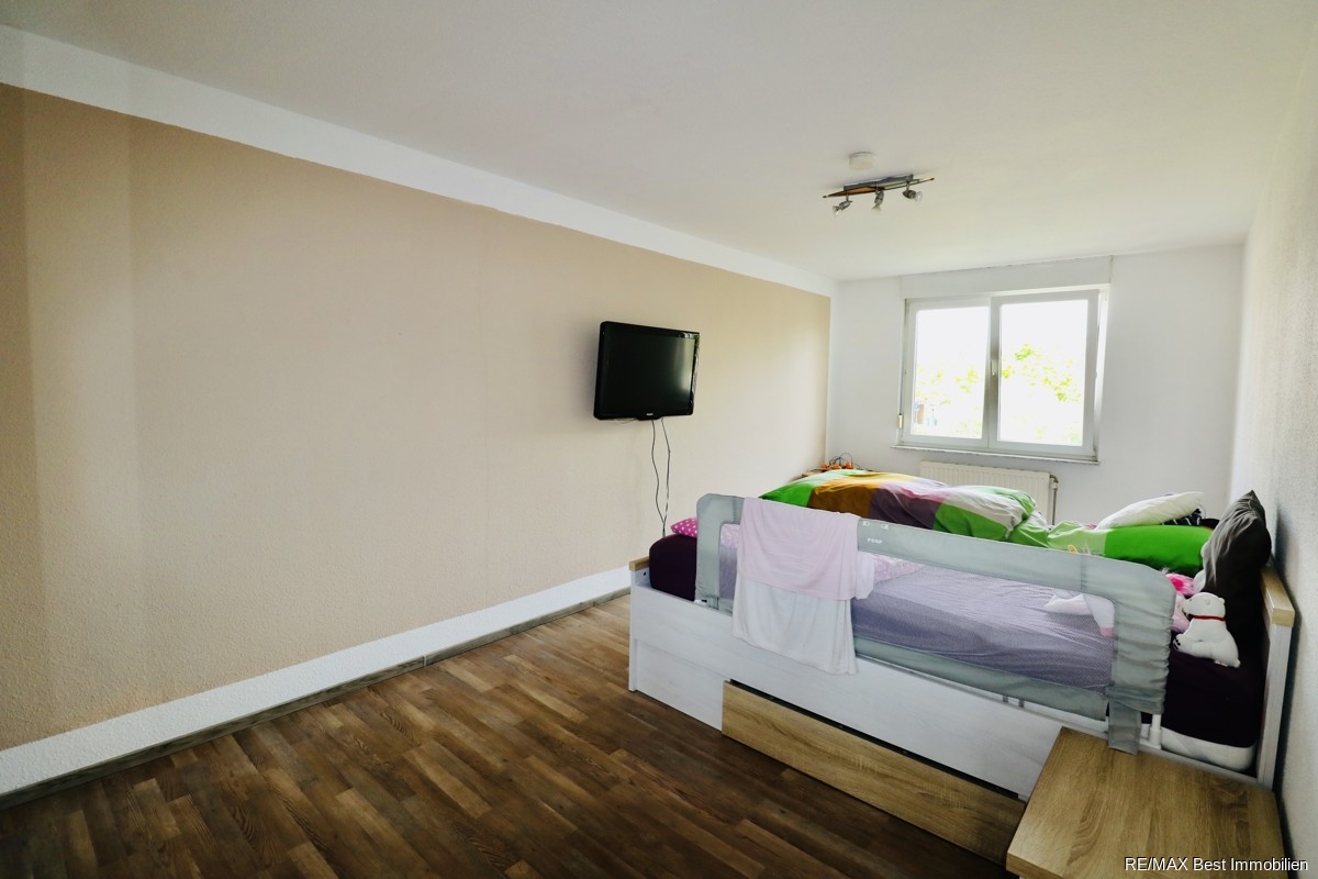 Im Obergeschoss mit ca. 52 m² Wohnfläche gelangen Sie vom Flur aus in ein Badezimmer mit Dusche und Badewanne sowie in drei weitere Zimmer. Davon zwei kleinere Zimmer mit ca. 11 m² und ein großes Zimmer mit ca. 20 m² Wohnfläche,