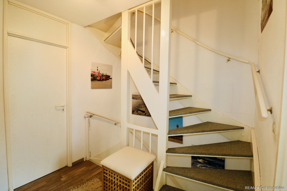 - Holztreppe mit Teppich