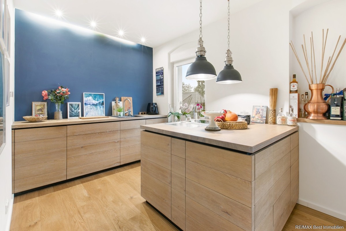 - von einem Schreiner als Unikat angefertigte, hochwertige Einbauküche inkl. Elektrogeräten