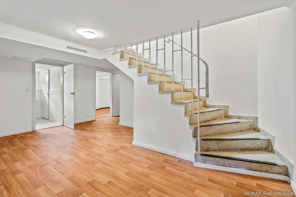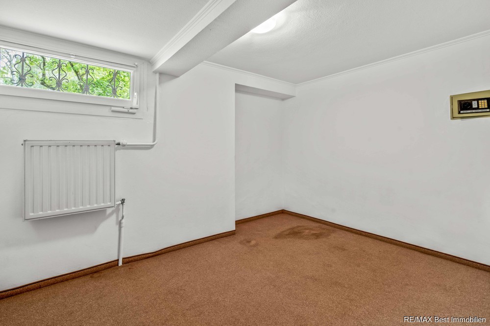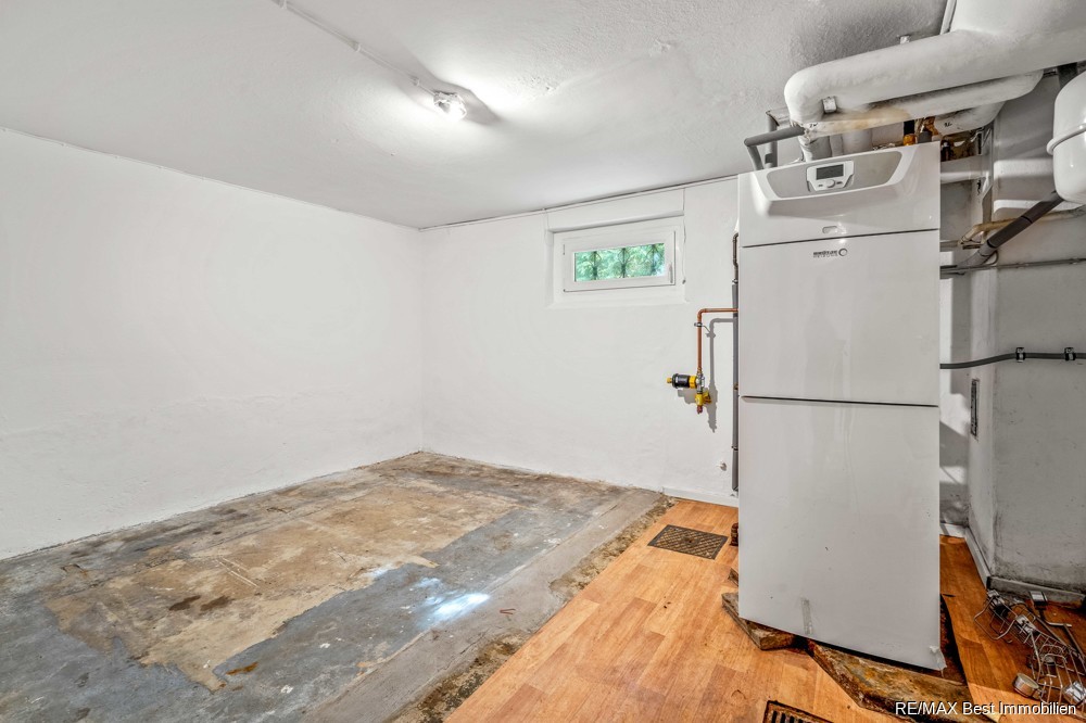 Zudem befinden sich im Souterrain drei weitere Zimmer sowie ein Badezimmer, ein Elektroraum und ein Heizungsraum (mit einer Gas-Brennwerttherme). Das Souterrain ist als Wohnraum voll nutzbar. Es ist beheizt, verfügt über große Fenster und eine ausreichende Deckenhöhe von mehr als 2,20 m.