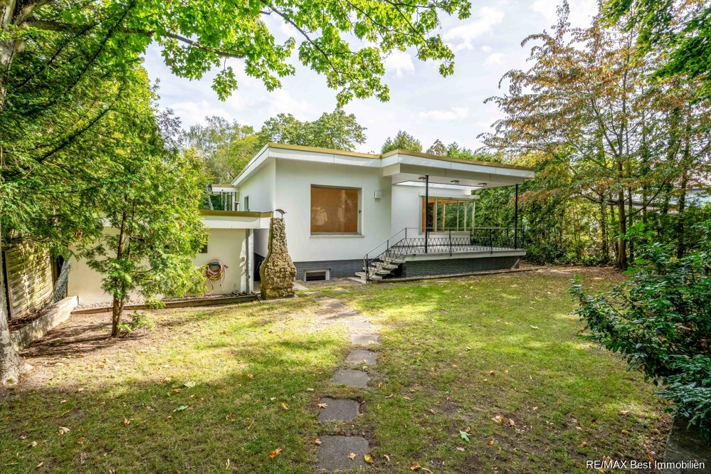 Im Angebot steht im Alleinauftrag eine Architektenvilla in exklusiver Lage in Berlin - Dahlem.Der Dassbach-Bungalow wurde ca. 1963/64 von dem Architekten Heinz G. Lambrecht, für Friedrich-Wilhelm Dassbach, als Einzelwohnhaus im Bauhaus Stil errichtet.