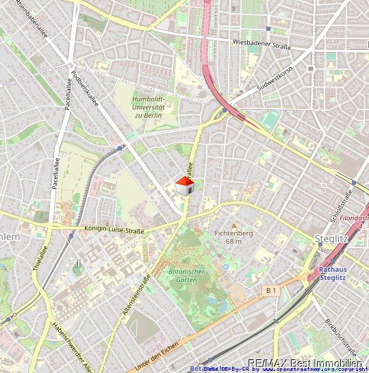Dahlem ist ein Ortsteil im Bezirk Steglitz-Zehlendorf in Berlin. Er befindet sich im Südwesten der Stadt zwischen den Ortsteilen Zehlendorf und Steglitz, der Ortslage Lichterfelde West und dem Forst Grunewald. Viele Villen und kleine Parkanlagen prägen das Bild des Ortsteils. Zahlreiche Wissenschaftseinrichtungen sind in Dahlem angesiedelt, darunter auch die Freie Universität Berlin mit mehreren Instituten.Der Bezirk ist umgeben von Parks und Grünanlagen, wie dem Grunewald und dem Botanischen Garten, die beliebte Ausflugsziele für Einheimische und Touristen sind. Der Botanische Garten befindet sich in unmittelbarer Umgebung des Objektes.