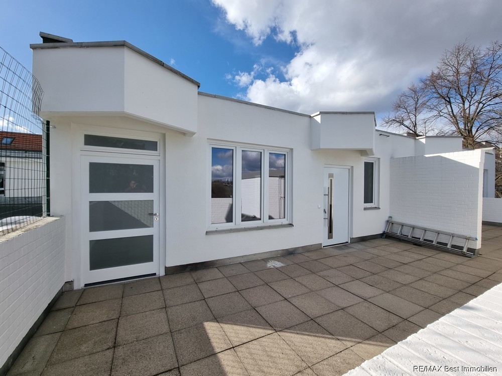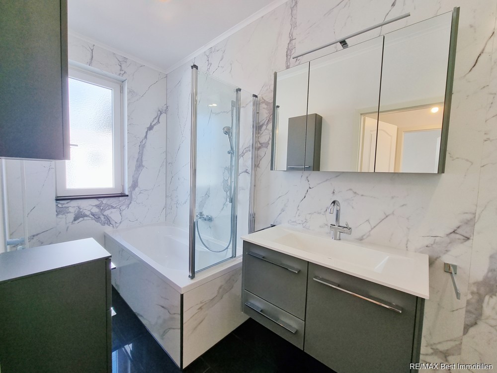 Die Wohneinheiten im 1. OG sind über eine separates Treppenhaus zu erreichen. Die gesamte Wohn-/Nutzfläche beträgt ca. 186,00 m², wovon ca. 100,19 m² auf eine 3-Zimmerwohnung und ca. 85,86 m² auf eine 2-Zimmerwohnung entfallen. Beide Wohnungen verfügen zusätzlich zu den Zimmern über eine neue Küche, ein neues Bad, eine große Terrasse und einen neuen, geschlossenen Wintergarten.