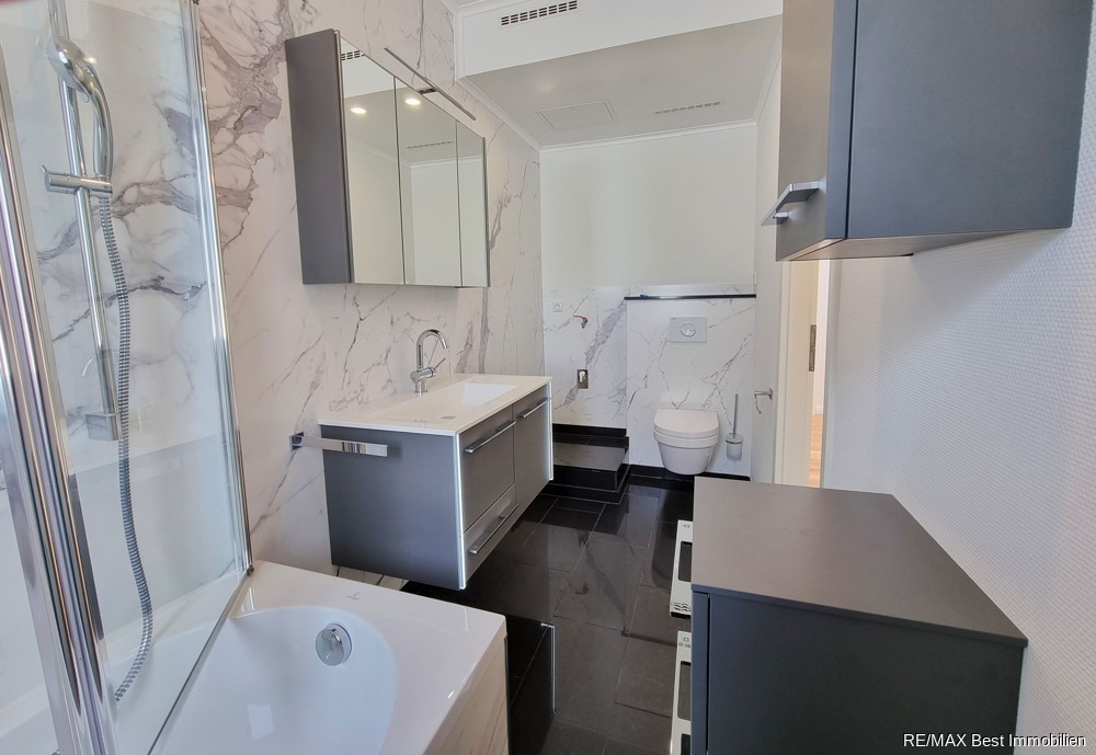 - Duschwanne, wandhängendes WC mit Vorwandinstallation