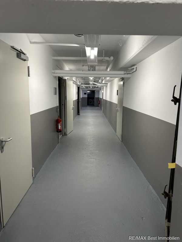 Das KG verfügt über eine Einfahrt mit einem Metall-Tor, nutzbar als Garage oder Anlieferung. Von hier aus gelangt man über einen Treppenaufgang in alle Etagen und separat über einen 2. Treppenaufgang nur in das EG. Auf dem Gelände können laut Lageplan bis zu 50 Stellplätze angeordnet werden.