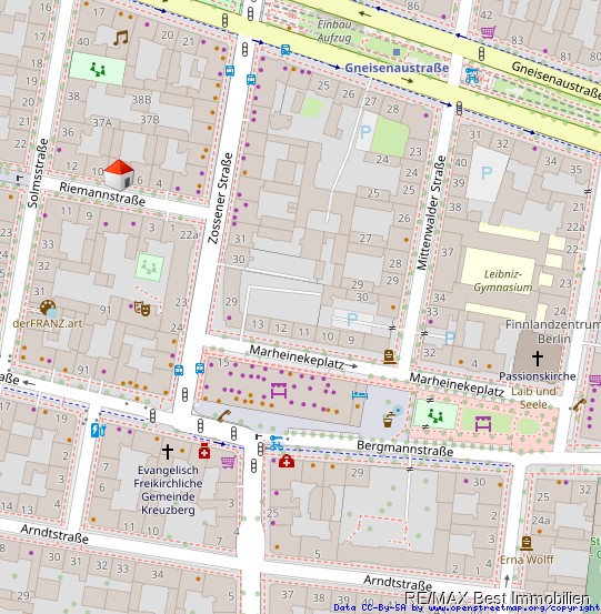 Die Umgebung des Objektes besticht vor allem durch die hervorragende Infrastruktur. Öffentliche Verkehrsmittel, Schulen, Kitas, Naherholungsmöglichkeiten wie der Kreuzberg und alle Läden des täglichen Bedarfs befinden sich in unmittelbarer Umgebung. Der Chamissoplatz und der "Bergmannkiez" sowie die Marheinekehalle liegen nur wenige Gehminuten vom Objekt entfernt.