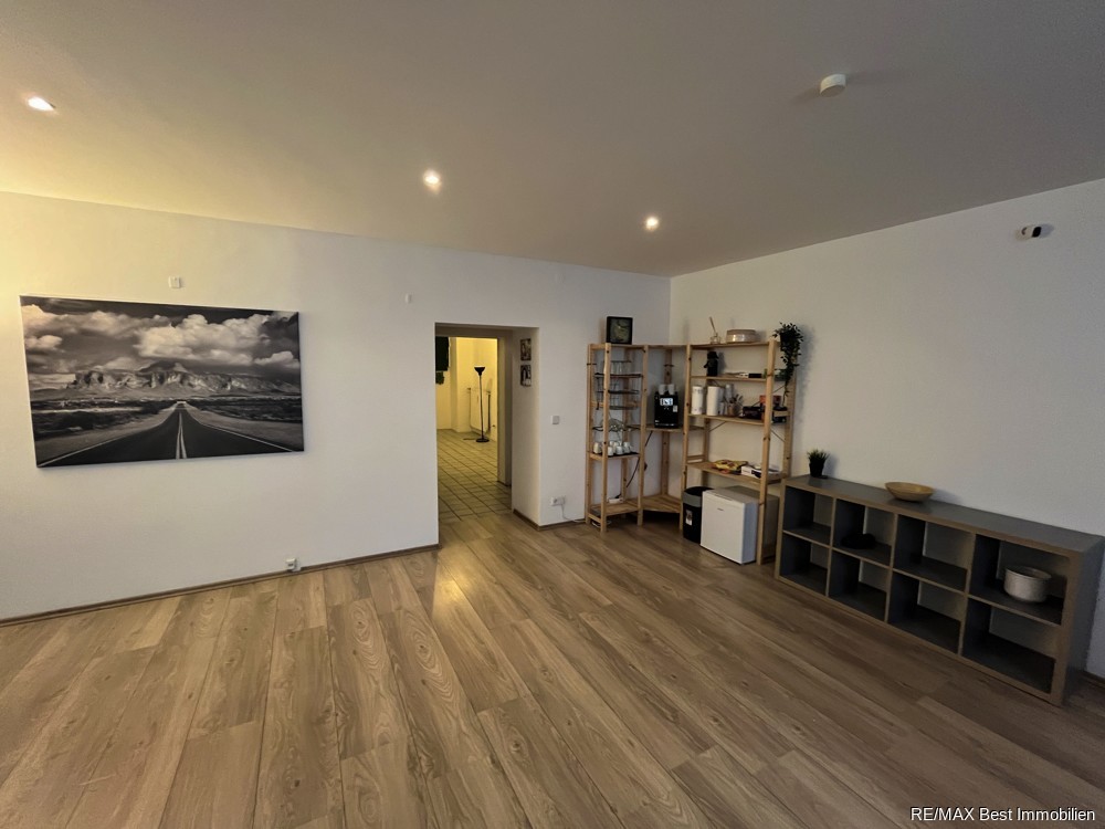 - Boden im Eingangsbereich u. Raum 1 mit Vinyl, im Rest des Objektes gefliest