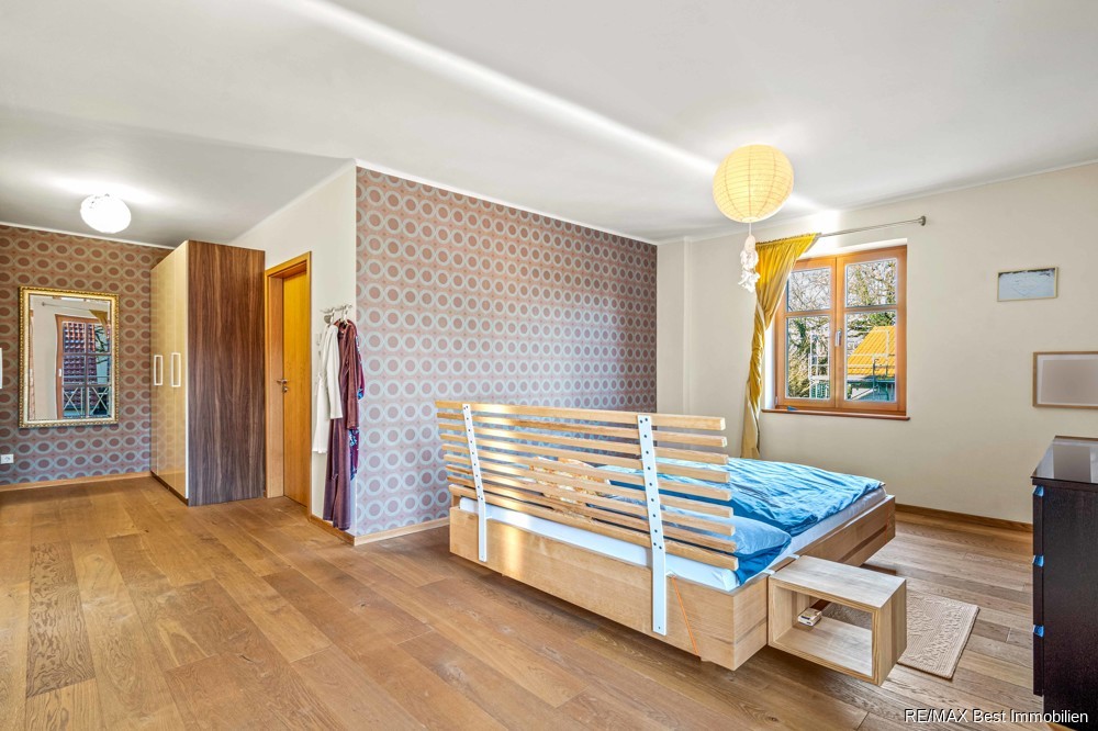 - Master Schlafzimmer mit direktem Zugang zum Badezimmer und Balkon