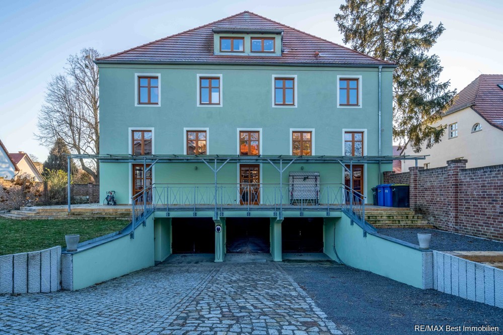 Der Haupteingang des Hauses ist zum historischen Stadtkern hin ausgerichtet. Die Zufahrt zum Grundstück wird grundbuchlich über das Nachbargrundstück per Geh-, Fahr- und Leitungsrecht gesichert.