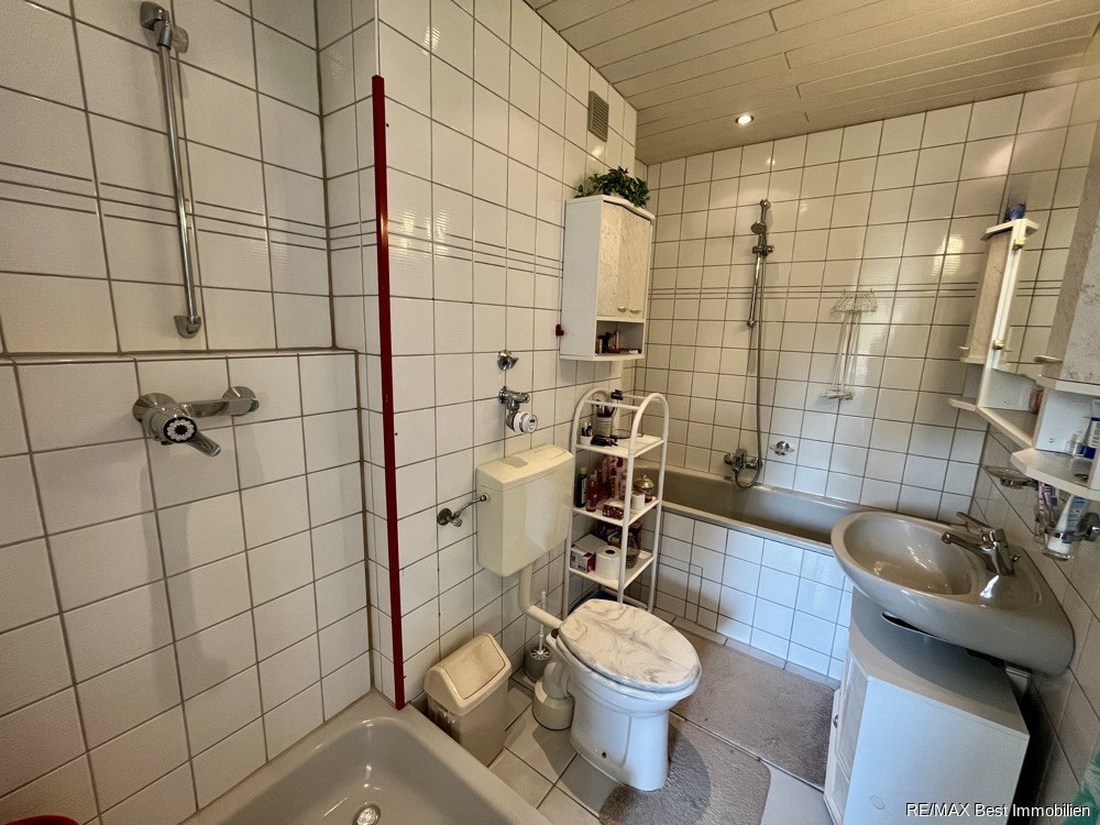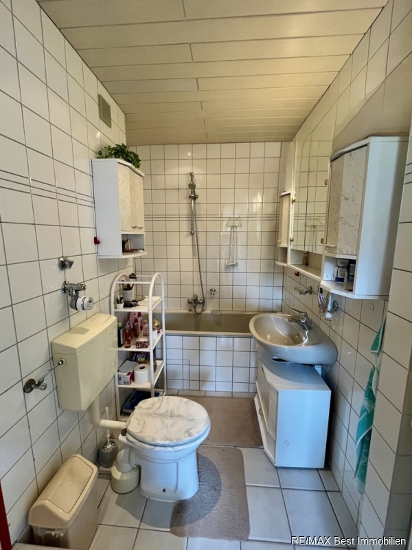 - Wannenbad mit separater Dusche in Deckenhöhe gefliest